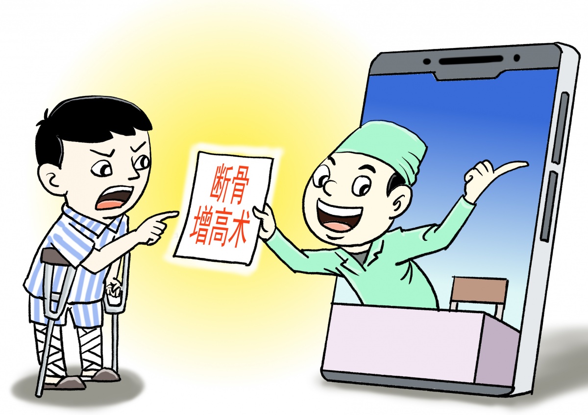国家卫健部门严禁将“断骨增高术”用于美容项目,明令医疗美容机构不得开展此项手术。然而,澎湃新闻记者近日发现,一些网络平台上仍有以较为隐蔽的方式宣传“断骨增高术”的账号和内容。还有疑似国外机构的账号,宣称手术由该领域“最顶尖的外科医生之一”完成,并诱导网友前往国外做手术。有道是: 敢夸暗地神医灵,诱客追高变鹤形。 锯开胫骨填虚愿,贻害终身上大刑。 官方禁令明似镜,黑流暗涌冒不停。 劝君别信忽悠术,切莫颠倒重与轻。 管弦士/文 刘志永/图 |