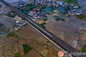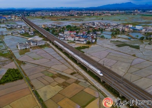 3月31日,宾阳县古辣镇的春日田野生机盎然,一列列和谐号动车飞驰而过,穿梭于田畴与村落之间,以现代交通的速度,串联起乡村振兴的脉络,勾勒出八桂乡村的诗意画卷。 刘峥 摄
